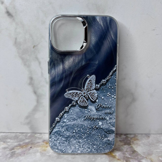 Главная » Чехлы » iPhone 13 чехлы » Чехол для Iphone 13 (6.1) кошачий глаз бабочка со стразами, серый