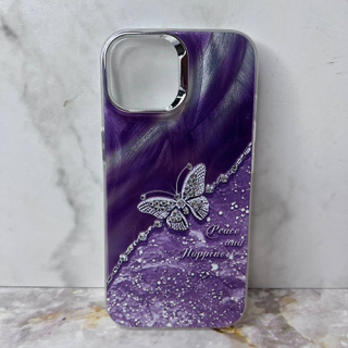Главная » Чехлы » iPhone 13 чехлы » Чехол для Iphone 13 (6.1) кошачий глаз бабочка со стразами, сиреневый