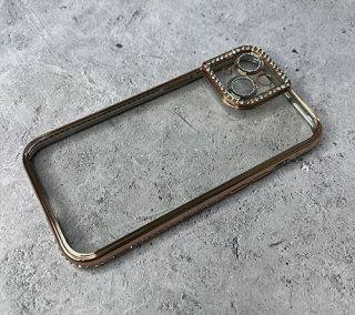 Главная » Чехлы » iPhone 13 чехлы » Силиконовый чехол Iphone 13 Pro Max (6.7) прозрачный в сеточку, с защитой со стразами, золотой