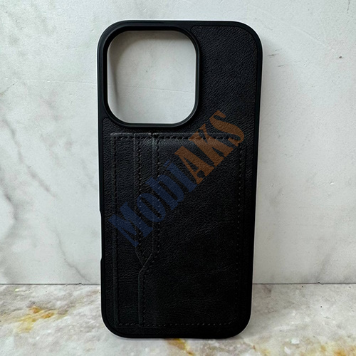 Чехол для Iphone 16 Pro Max под кожу с визитницей, черный