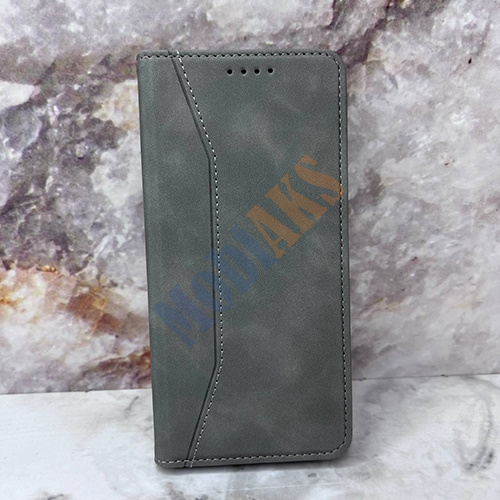 Чехол-книга NEW FASHION Samsung Galaxy A26 из нубука с силиконовым основанием и визитницей, серая