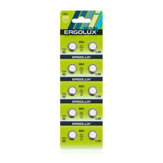 Батарейка ERGOLUX AG3/LR41 /LR736 /192 /392-10BL Alkaline, 1.5B, (цена за 1 шт)
