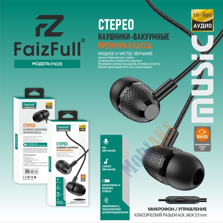 Купить Наушники проводные FaizFull FN28, цвет: черный Вы можете в нашем интернет-магазине или розничном магазине. Товар в наличии, указанная цена и количество актуальны, мы делаем ежедневное обновление каталога.
