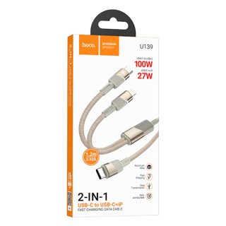Кабель Type-C - Type-C, 8 pin HOCO U139, 1.2м, 20V-5A (C-C), 20V-4A (C-8 pin), золотой