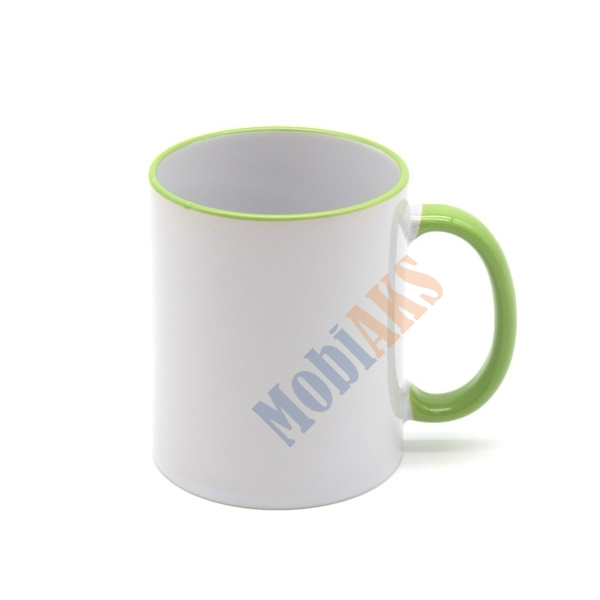 Кружка для сублимации цветной ОБОДОК + ручка, Светло-зеленая