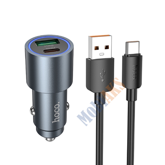 Блок питания в авто 1 USB, 1 Type-C HOCO Z60, Bloom, 48Вт, кабель USB - Type-C, 1.0м, цвет: серый