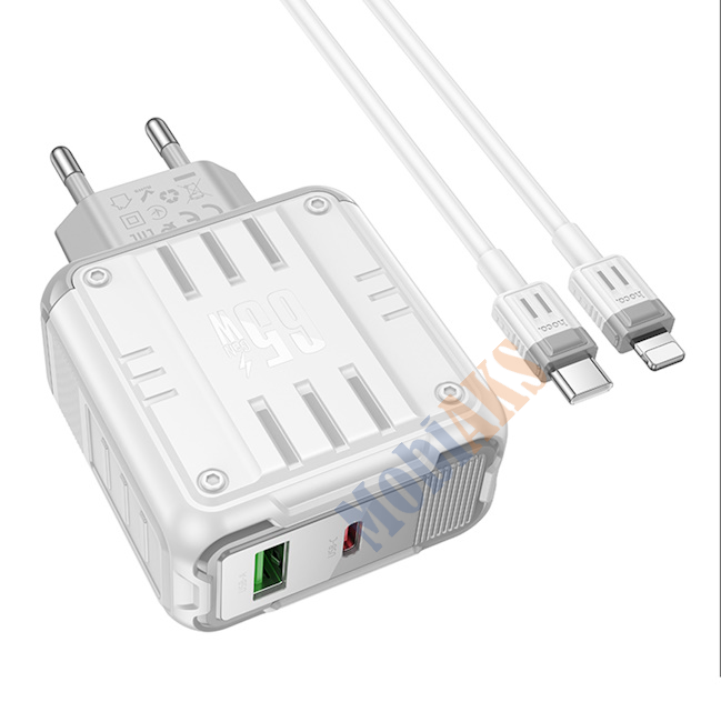 Блок питания 1 USB, 1 Type-C HOCO C138A, Rock, 65Вт, кабель Type-C, 8-pin, 1.0м, цвет: белый