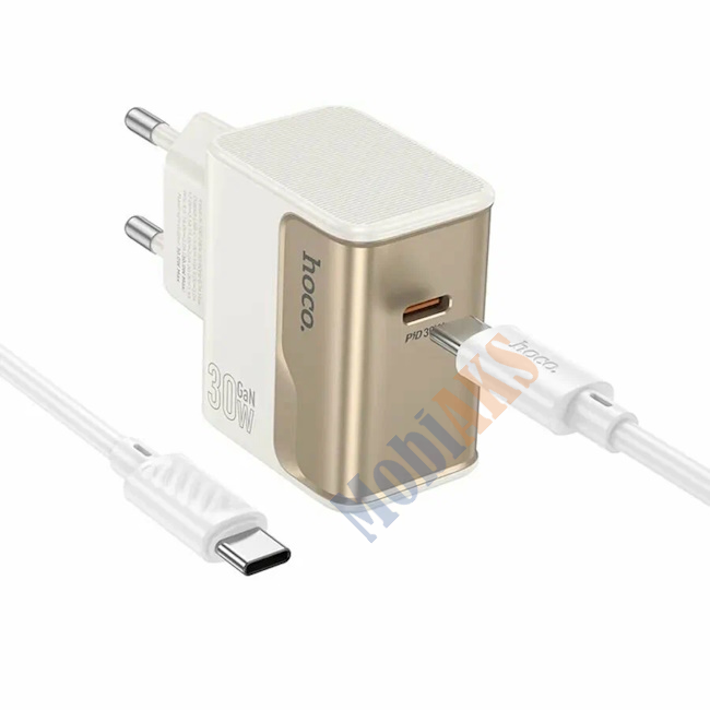 Блок питания 1 USB, 1 Type-C HOCO CS73A, Star speed, 30Вт, кабель Type-C 1.0м 60W, цвет: белый, золо