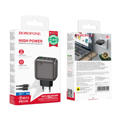 Блок питания 1 USB, 3 Type-C Borofone BAS57A, Absolute, кабель Type-C 1.0м 60W, цвет: черный
