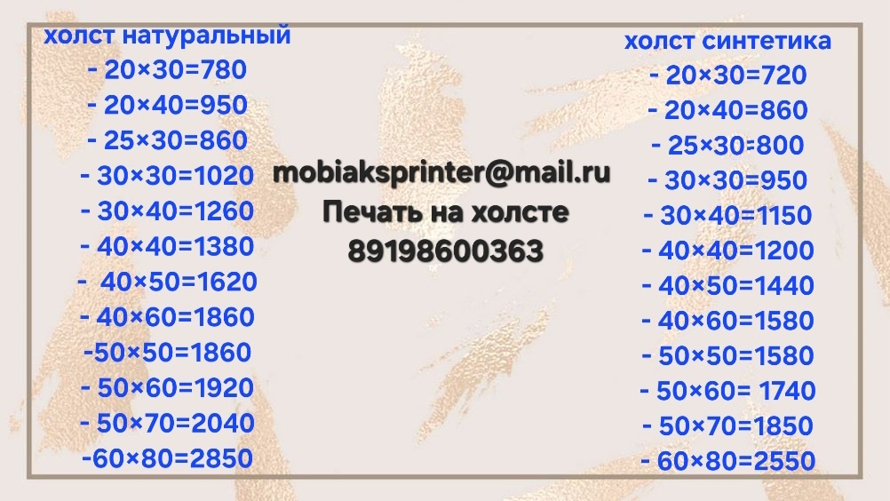 Тип холста: Натуральный Синтетика